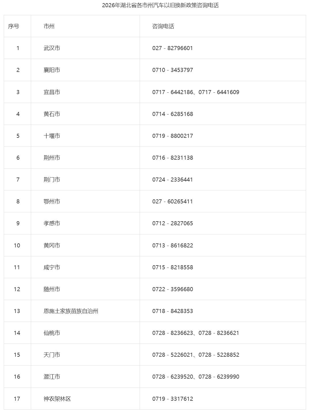 答:可以通過各地設(shè)立的汽車以舊換新電話進行咨詢。咨詢電話可通過“汽車以舊換新”小程序或湖北省汽車置換更新服務(wù)平臺查詢。