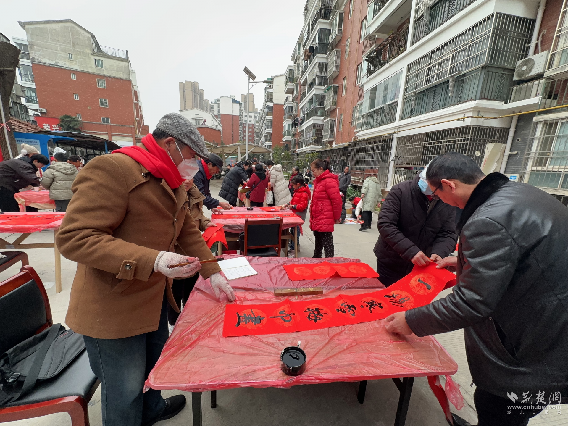 書(shū)法愛(ài)好者們現(xiàn)場(chǎng)揮毫潑墨書(shū)寫(xiě)春聯(lián)。通訊員供圖