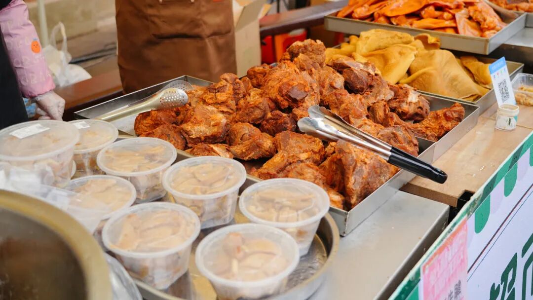 作為活動(dòng)的重要組成部分,特色年貨市集“滿倉(cāng)吉市”匯集了滿滿的煙火氣與本土特色。黃陂三鮮、鴨子煲、清湯鵝等地道美食香氣四溢,喚醒味蕾記憶。本地農(nóng)產(chǎn)品等特色攤位也一字排開(kāi),好不熱鬧。朝陽(yáng)村的豆絲攤位前早早排起了長(zhǎng)隊(duì)。朝陽(yáng)村黨支部書記、村委會(huì)主任熊偉介紹:“今天我們準(zhǔn)備了200斤米漿,現(xiàn)場(chǎng)制作近千張豆絲免費(fèi)供游客品嘗,既讓大家嘗到家鄉(xiāng)味,也帶動(dòng)了村里油、土雞、糯米等農(nóng)副產(chǎn)品的銷售?!?/p>