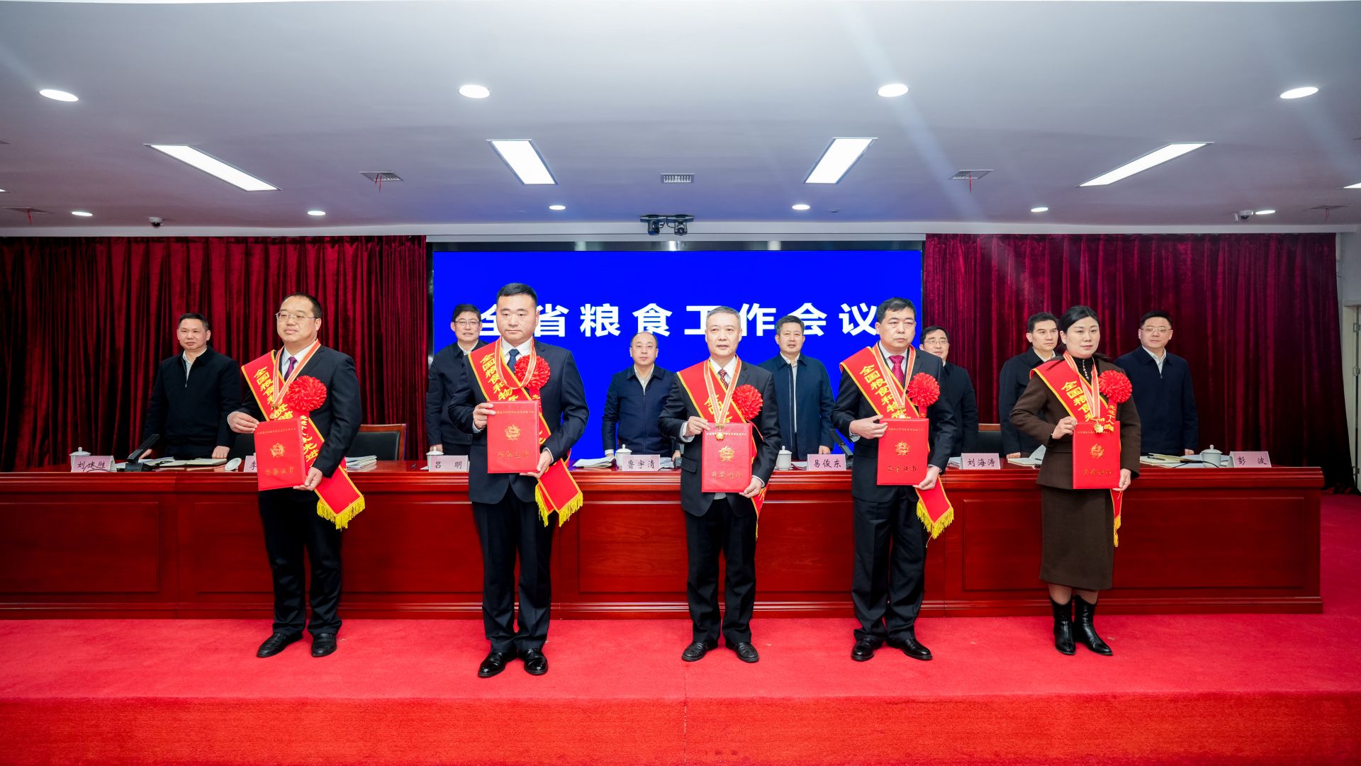 會(huì)上宣讀了《人力資源社會(huì)保障部國(guó)家糧食和物資儲(chǔ)備局關(guān)于開展全國(guó)糧食和物資儲(chǔ)備系統(tǒng)先進(jìn)集體和先進(jìn)個(gè)人評(píng)選表彰的通知》,為我省獲得表彰的先進(jìn)集體和先進(jìn)個(gè)人頒發(fā)獎(jiǎng)牌、證書。武漢市、荊州市、黃岡市發(fā)展改革委(糧食局)3個(gè)單位分別作了典型交流發(fā)言。