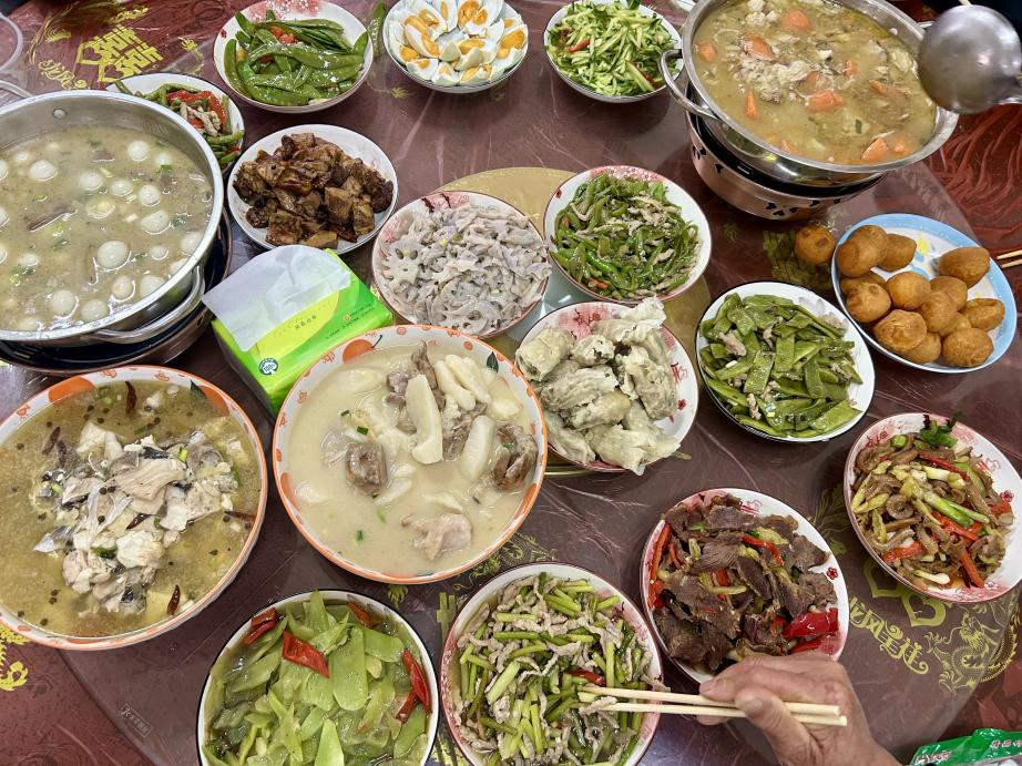 中午時分,食堂里歡聲笑語,其樂融融。老人們圍坐在一起,共進團圓飯。桌上菜品葷素搭配,營養(yǎng)均衡,還有熱氣騰騰的燒麥、松軟的餅子等手工面點,既顧及了老人們的口味,也體現(xiàn)了服務的細致。大家一邊品嘗著可口的菜肴,一邊親切地拉著家常,滄桑的臉上洋溢著幸福的笑容。
