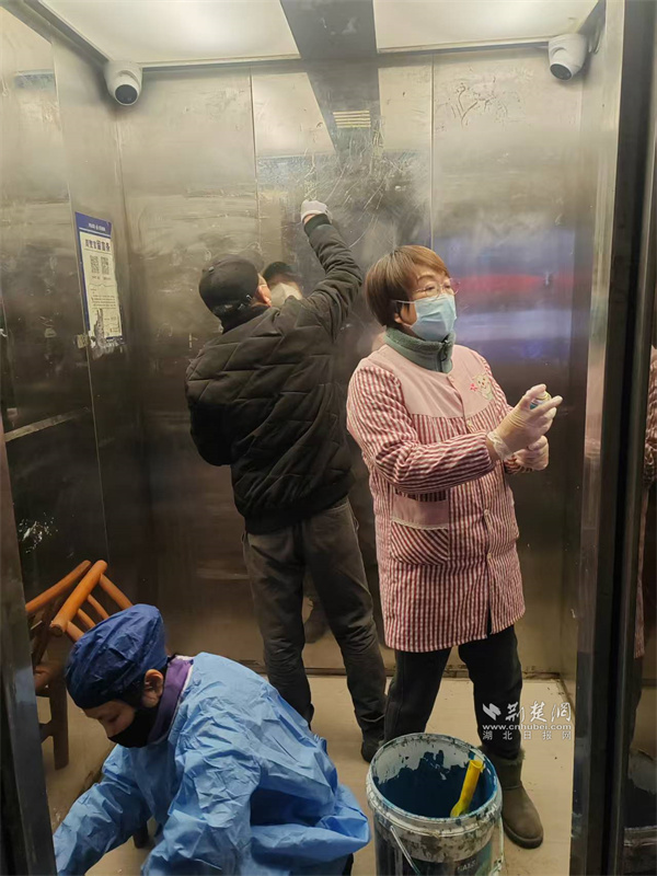 居民們自發(fā)參與電梯清潔工作。 通訊員供圖