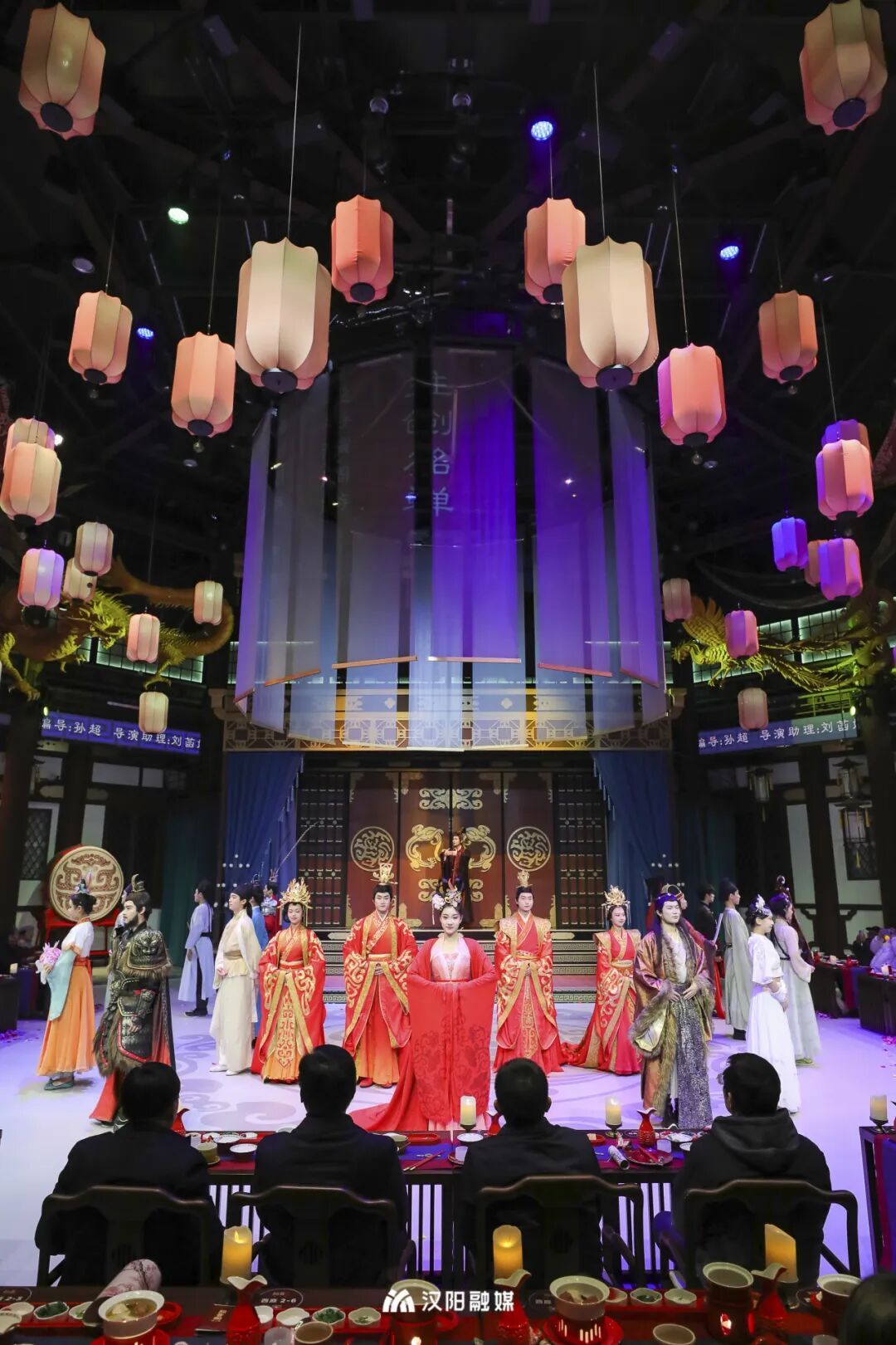 待到晚上,沉浸式餐秀《三國群芳宴》開席!一邊干飯一邊看舞蹈表演,讓手機里的朋友先吃,共同感受荊楚文化與美食的震撼。