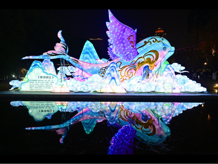 本屆燈會(huì)精心布局26個(gè)點(diǎn)位,展出彩燈造型約81余組,規(guī)模宏大、主題鮮明、設(shè)計(jì)精巧。燈組整體融合傳統(tǒng)元素與現(xiàn)代審美,既有對(duì)中華優(yōu)秀傳統(tǒng)文化的致敬,也有對(duì)宜昌本土文化的深度挖掘。