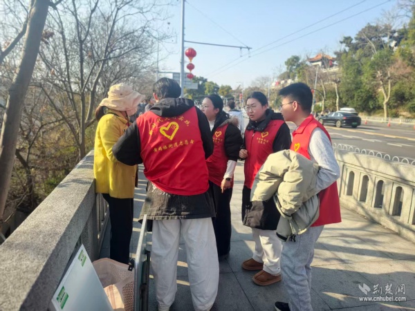 春節(jié)期間,黃鶴樓景區(qū)迎來客流高峰。西廠口社區(qū)“新春守護(hù)隊(duì)”的志愿者們每日駐守在彭劉楊路地鐵站各出入口、下橋閘道及黃鶴樓景區(qū)周邊,開展動態(tài)巡查與志愿服務(wù)。從路線指引到票務(wù)咨詢,從行李協(xié)助到應(yīng)急幫扶,志愿者們用熱情的微笑和專業(yè)服務(wù),為初來乍到的外地游客送上第一縷“武漢溫度”。