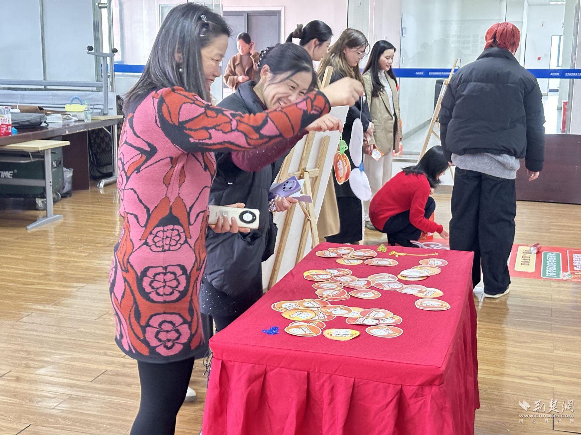自由游戲區(qū)同樣人氣十足。滾動“湯圓”的祝福賽道前,員工認(rèn)真調(diào)整力度,期待停在“招商企業(yè)100家!”“沖進(jìn)國內(nèi)500強(qiáng)企業(yè)”等激勵區(qū)域;“福氣粘粘到”桌前,十秒鐘的挑戰(zhàn)讓人屏氣凝神;燈謎區(qū)前,有人皺眉思索,有人靈光一閃,最終猜出謎底贏得掌聲。