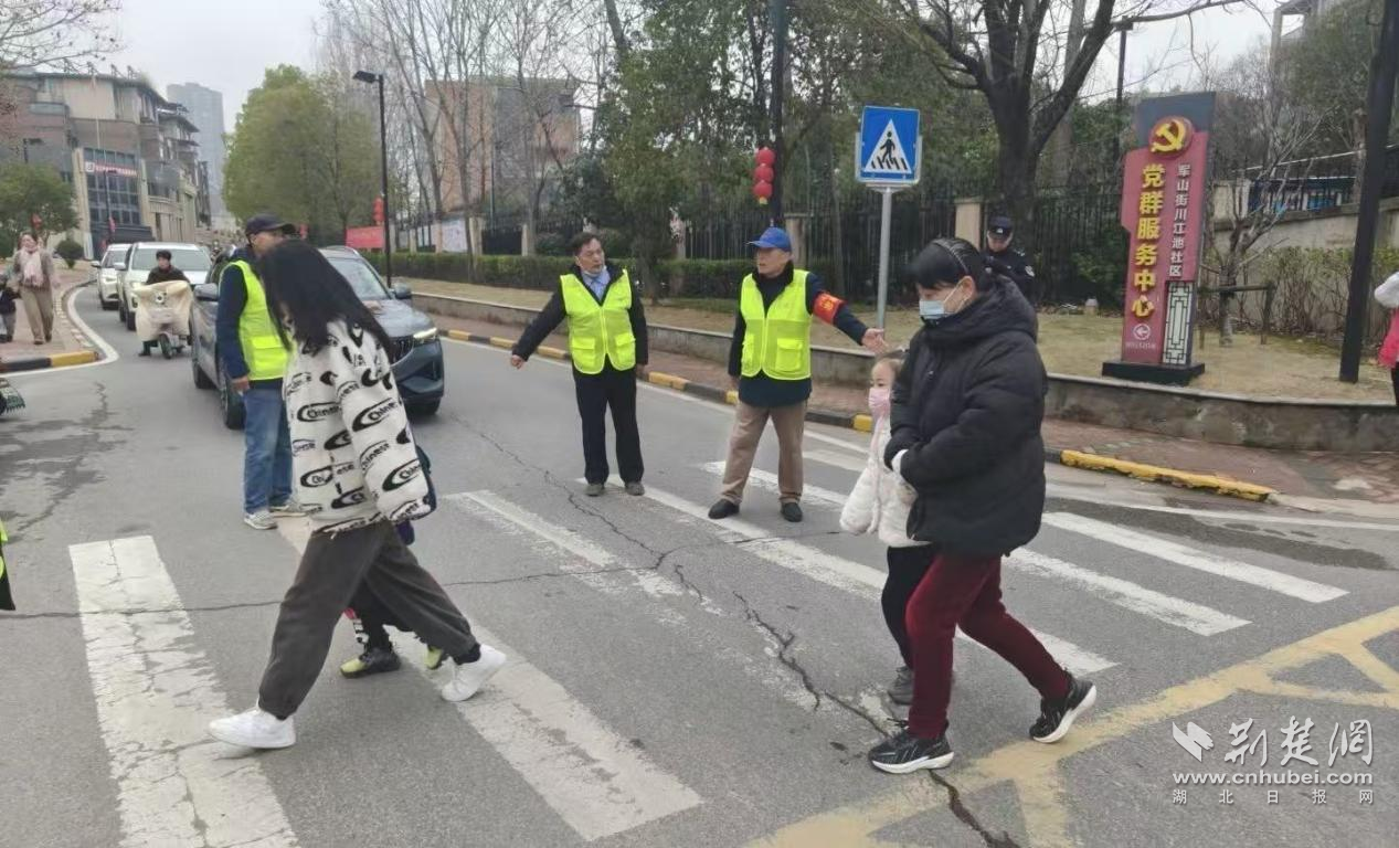 荊楚網(wǎng)(湖北日報網(wǎng))訊(通訊員 吳曉琪、楊慕曦、曹悅、黃盈)春風送暖,開學啟航。3月4日,2026年春季新學期開學第一天,武漢經(jīng)開區(qū)軍山新城蒲潭社區(qū)、龍湖社區(qū)、小軍山社區(qū)、川江池社區(qū)同步啟動春季開學護學專項行動,聯(lián)動社區(qū)志愿者、民警、物業(yè)等多方力量,在學校周邊引導接送車輛即停即走,護送學生安全通過馬路,及時排查消除各類安全隱患,用實際行動為孩子們筑起了一道安全的“防護墻”,為廣大師生營造了安全、有序、暢通的入學環(huán)境。