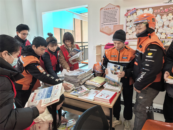 活動中,由外賣小哥和街道自籌的嶄新雜志、書籍被統(tǒng)一運送到小區(qū)會所三樓居民活動室。外賣小哥與社區(qū)志愿者一同對圖書雜志進行分類整理、擦拭清潔、規(guī)范擺放,讓原本零散的書籍變得井然有序,閱讀區(qū)域煥然一新。隨后,大家對活動室地面、桌面、窗臺及衛(wèi)生死角進行全面清掃。經過共同努力,活動室窗明幾凈、整潔有序,為居民休閑閱讀、文娛活動營造了舒適溫馨的空間。