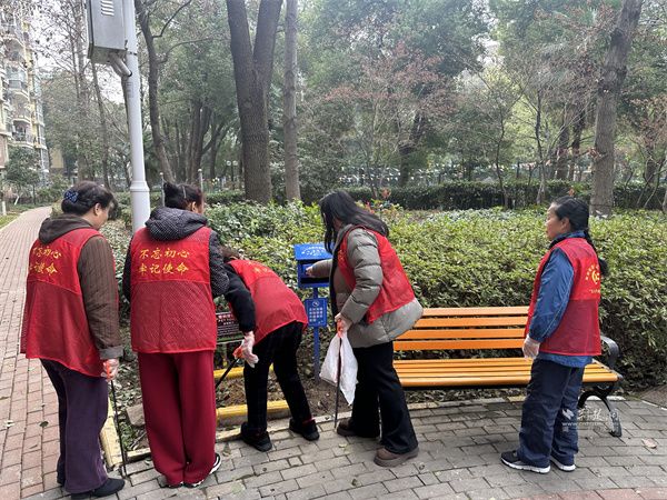 活動現(xiàn)場,全體人員齊聲合唱《學習雷鋒好榜樣》,激昂旋律點燃奉獻熱情。志愿者們分工協(xié)作、有序行動,一組擦拭樹木認養(yǎng)牌、更換嶄新標簽,為樹木明確“身份標識”,增添護綠責任;另一組擦拭公共休閑椅、科普設施及兒童游樂設施,讓公共空間潔凈如新。