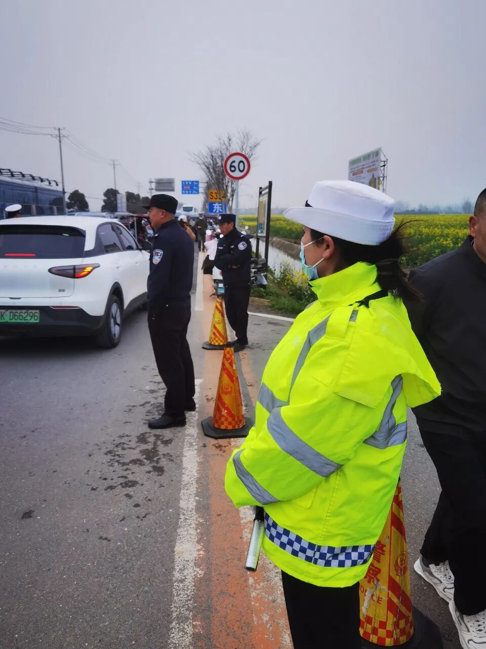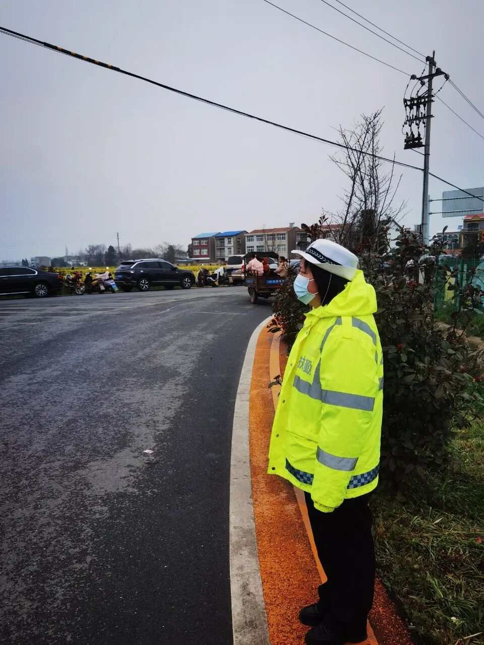 堅守崗位的女警們巾幗不讓須眉,與男民警并肩作戰(zhàn),風餐露宿,在花海旁的道路上默默堅守。她們耐心指揮交通、熱情解答游客咨詢,細致開展交通安全宣傳,向過往群眾講解“一盔一帶”、安全行車等知識,提升群眾交通安全意識。忙碌間隙,大家以警車為桌、以路面為席,簡單就餐后迅速返回崗位,用實際行動詮釋責任與擔當。