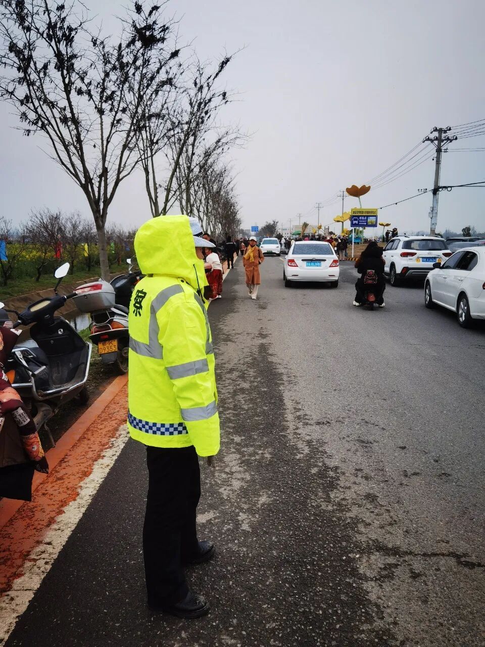 活動期間,景區(qū)周邊車流、人流大幅增加,道路交通壓力顯著增大。為保障道路安全有序,執(zhí)勤民輔警提前到崗,在重點路口、易擁堵路段設(shè)置執(zhí)勤點位,采取定點值守與動態(tài)巡邏相結(jié)合的方式,引導(dǎo)車輛有序通行、規(guī)范停放,及時疏導(dǎo)交通擁堵,全力保障游客出行順暢。