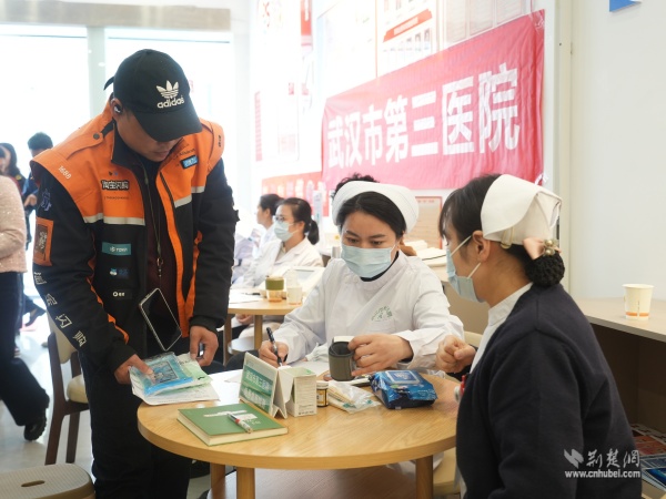 互動(dòng)環(huán)節(jié)采取“一站式集成服務(wù)”,將活動(dòng)氛圍推向高潮。社保專家咨詢臺(tái)前,騎手們排隊(duì)咨詢靈活就業(yè)參保、待遇申領(lǐng)等問題;醫(yī)護(hù)人員同步開展義診服務(wù),提供血糖血壓監(jiān)測(cè)、骨質(zhì)疏松檢測(cè),并手把手教大家正確使用筋膜槍,緩解肌肉疲勞;漢口銀行黃鶴樓支行工作人員現(xiàn)場(chǎng)為有需要的騎手辦理社??ǎ①?zèng)送貼心小禮品,打通職業(yè)傷害待遇享受“最后一公里”;愛聯(lián)盟工作室咨詢臺(tái)前,幾位年輕騎手駐足咨詢、登記意向,在忙碌生活中邂逅溫暖期待。