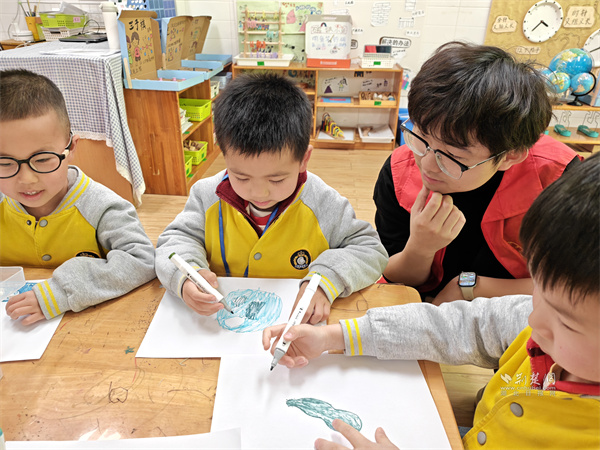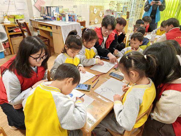 志愿者與小朋友開展互動教學。 通訊員供圖