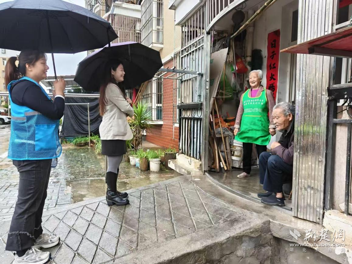 社區(qū)網(wǎng)格員雨中逐一開展“敲門行動(dòng)”。通訊員供圖