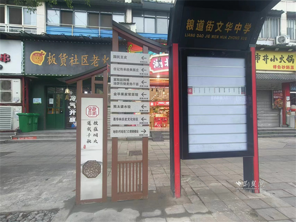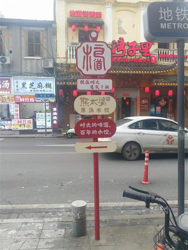 為幫助食客高效探索糧道街“美食宇宙”,街區(qū)在主要入口,設(shè)置了信息豐富的美食總覽立牌,標(biāo)注出特色店鋪。街巷內(nèi)部,則布設(shè)了風(fēng)格統(tǒng)一、指向明確的路口美食導(dǎo)向牌,形成清晰的尋味指引網(wǎng)絡(luò),實(shí)現(xiàn)“一圖在手,吃遍糧道”。這些美食導(dǎo)覽圖有效引導(dǎo)了人流,分散了聚集壓力,也讓美食探索變成了一場輕松有趣的“尋寶”之旅。