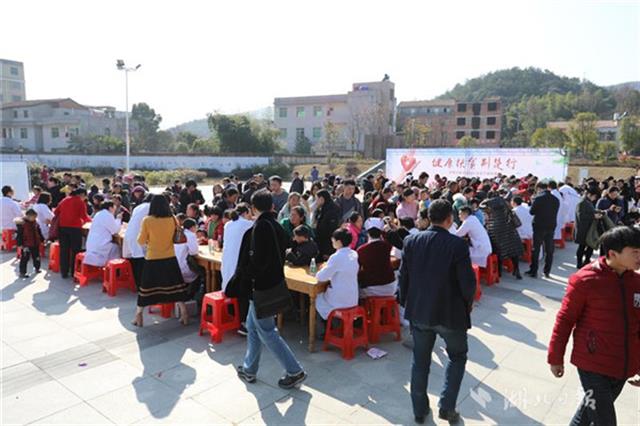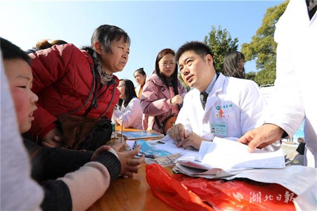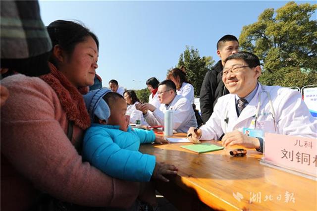 當(dāng)天下午,同濟(jì)醫(yī)院兒科、小兒外科、眼科、耳鼻咽喉科、心臟大血管外科等20位專家團(tuán)隊(duì)來到咸寧市咸安區(qū)高橋鎮(zhèn)文化廣場為當(dāng)?shù)厣倌陜和M(jìn)行義診,醫(yī)務(wù)人員為孩子們進(jìn)行了兒童常見疾病篩查,細(xì)致地為每一個(gè)孩子做好記錄,并向家長講解疾病預(yù)防和治療常識(shí),讓孩子們健康平安過大年。
