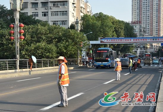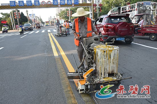 赤壁網(wǎng)消息(記者 聶愛(ài)陽(yáng))8月6日,記者在一橋路段看到,工人們正在對(duì)路面老舊交通標(biāo)線進(jìn)行重新噴涂工作。