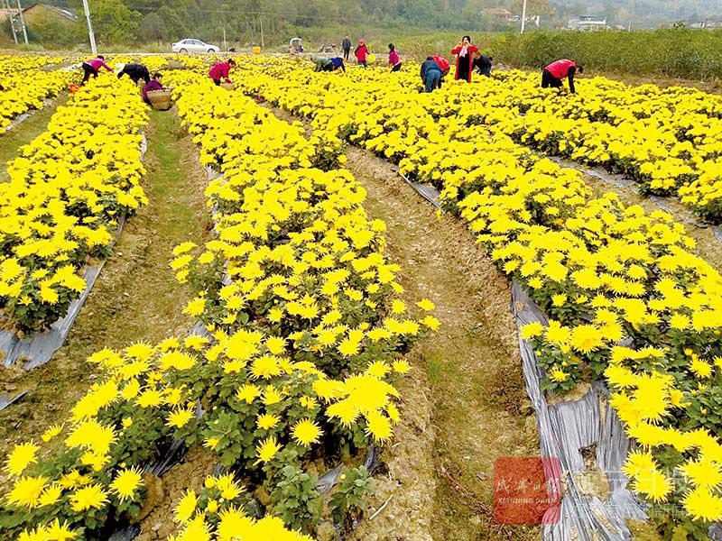 咸寧網(wǎng)訊 咸寧日?qǐng)?bào)全媒體記者 吳文謹(jǐn)、通訊員 吳劍、張璐報(bào)道:近日,在咸安區(qū)桂花鎮(zhèn)萬壽橋村,群眾們正在采摘菊花,臉上露出燦爛的笑容。