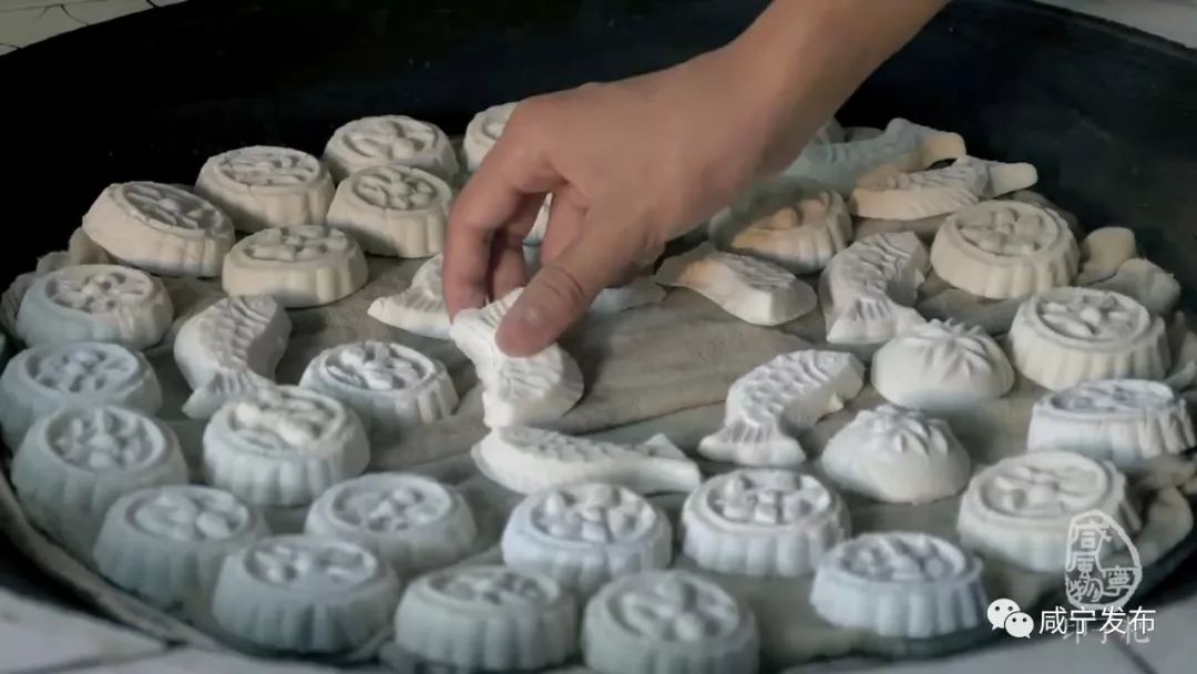印子粑是咸寧鄉(xiāng)村廣為流傳的民俗食品,一般在春節(jié)和孩子一歲生日時(shí)制作。粑印用木制,每個(gè)粑印有1-3個(gè)空模,形狀一般只有小茶杯口大。粑印里刻有反向的如魚以及花、草等各種動(dòng)植物圖案,制作出來(lái)的粑邊緣有一圈花紋,形象生動(dòng),栩栩如生。堆成的粑山,晶瑩透亮,造型美觀,堪稱優(yōu)秀的民間藝術(shù)品。