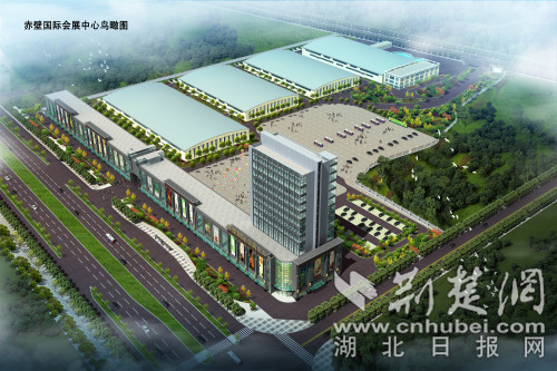 赤壁國(guó)際會(huì)展中心鳥(niǎo)瞰圖。赤壁市委宣傳部供圖