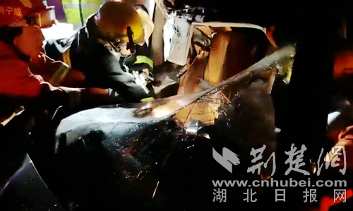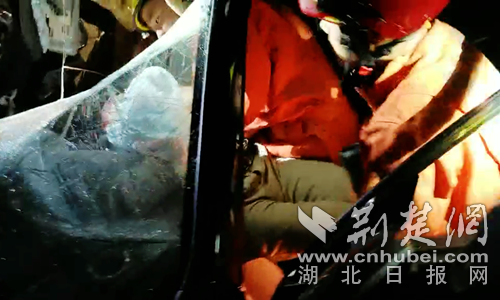圖為消防員救出司機(jī)現(xiàn)場。 曾水生攝