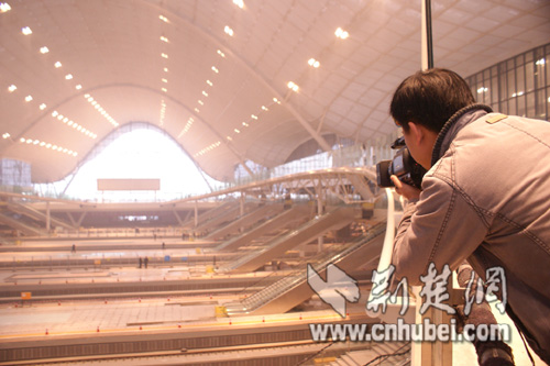 荊楚網消息(記者高霞、艾凌璐 攝影記者王唯翀)12月10日早上7時30分,湖北日報、湖北電視臺、湖北人民廣播電臺、荊楚網等四十家來自中央駐漢、湖北省級及地市媒體一行開始武廣體驗之旅。動車組9時52分發(fā)車,12時42分到達終點站廣州北。由于位于番禺的廣州南站未能及時建成,位于花都的廣州北站成為武廣客運專線的臨時始發(fā)站和終點站。