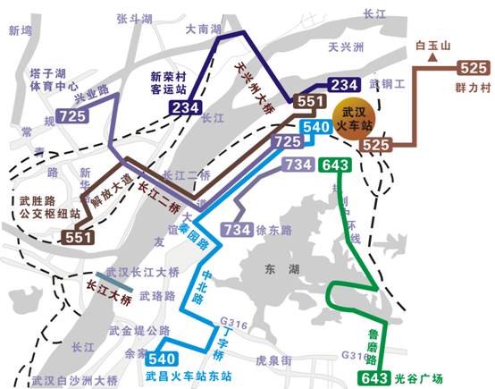 據(jù)悉,春運期間,將根據(jù)客流變化情況,調(diào)整增加武漢站上述7條公交線路運力,還將開通武漢站至漢口站的大站快車線路。走向為:武漢站經(jīng)白云路、團結(jié)大道、建設(shè)十路、友誼大道、長江二橋、黃浦大街、發(fā)展大道、常青路至漢口站。