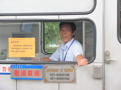 為了提升服務(wù)質(zhì)量,老朱是想法設(shè)法為司乘排憂解難。隨著武漢“8+1”城市圈建設(shè)的迅速崛起,到蒲團(tuán)鄉(xiāng)周邊村莊的車輛日漸增多,特別是“清明、國慶”車流高峰時期,出蒲團(tuán)站問路的司機(jī)一個接著一個,不但容易造成錢票誤差,還時常發(fā)生堵車現(xiàn)象,影響“窗口”服務(wù)形象。然而一般的地圖宣傳冊中沒有地方上的小地名。為了讓不熟悉路的司乘人員減少站口問路的時間,不走彎路,工作之余,他親自走訪周邊村莊、鄉(xiāng)鎮(zhèn)、學(xué)校、企業(yè)等地理位置,了解地方人物文化、旅游資源,精心繪制了一份《蒲團(tuán)收費站周邊地域示意圖》,并打印成冊,分發(fā)到需要的司乘手中,解決了司乘問路和員工解答的難題。