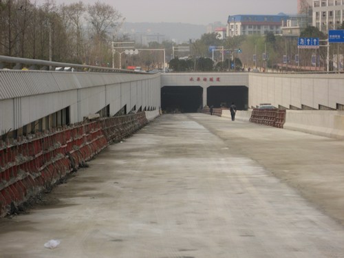 水果湖隧道是二環(huán)線工程的重要節(jié)點工程,隧道南起湖北省審計廳正門,沿線經(jīng)過中科院水生物研究所、東湖南路、東湖、東湖賓館,北至東湖路湖北省消費協(xié)會,全長1735米,隧道內(nèi)為雙向四車道,采用鋼板樁圍堰明挖法施工。隧道工程內(nèi)容包括隧道主體結(jié)構(gòu)工程以及機(jī)電設(shè)備安裝、隧道裝飾裝修、消防、監(jiān)控、交通、照明等附屬工程。工程總投資5.37億元。